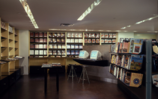 Ubicación: New York, USA Tipología: Retail / Construcción Nueva Área: 98 M2 Estatus: Realizado Ubicada en el lobby de la planta baja de su sede mundial en Nueva York, la tienda se especializa en la venta de libros de colección y catálogos. Diseñadas en un espacio de baja altura del edificio, paneles de exposición fabricados en acero están organizados de manera rectilínea para crear diversas perspectivas interiores. Estos pasillos "tipo calle" enmarcan perímetros distintivos de madera oscura y clara y compartimientos de almacenamiento dentro del recinto. Las rupturas en estos elementos lineales marcan las zonas para el [...]